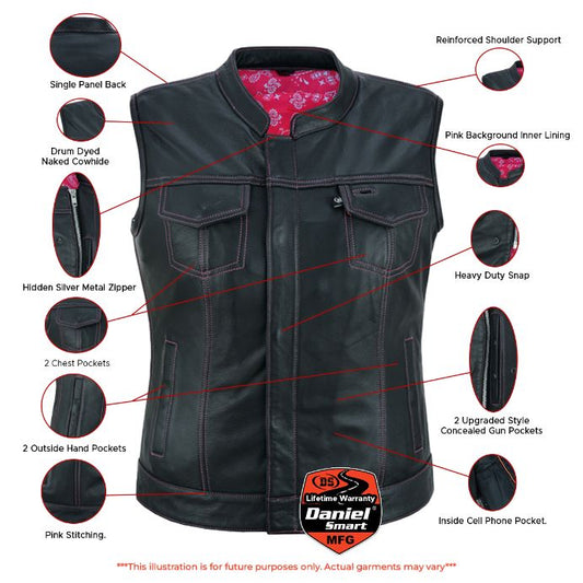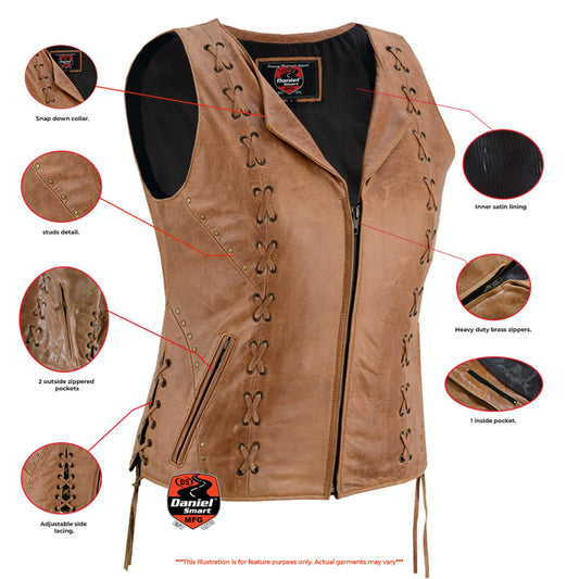 DS Women's Antique Brown Single Back Panel Concealed Carry Vest