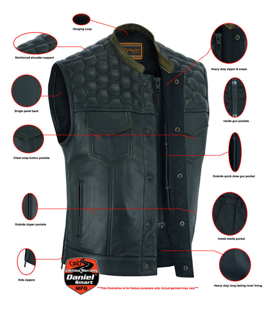 DS Whiskey Men's Motorcycle Leather Vest - Black