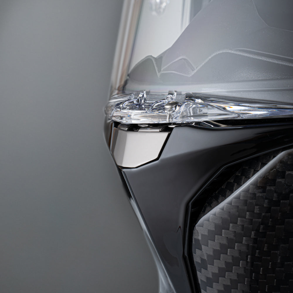 Our D.O.T. And ECE Daytona Viper Helmet, With Inner Anti-Scratch Retractable Smoke Shield, In Grey Carbon Fiber, Meets And Exceeds D.O.T. FMVSS 218 And ECE 22R06 Standards. With 2 Different Shell Sizes, You're Sure To Get That Proportionate Fit!! Features A Dual Shield System; Outer Anti-Scratch Clear Shield With Pinlock 120 Lens (Anti-Fog) And Inner Anti-Scratch Retractable Smoke Shield. Also Has A Quick Release Lock Retention System; One Finger Release Lever For Easy Detachment, Passive Chin And Forehead Ventilation, And A Removable, Hand Washable Interior (Moisture Wicking Fabric). Bluetooth Compatible. Cloth Draw String Bag Included. Sizes Range From XS-2XL.